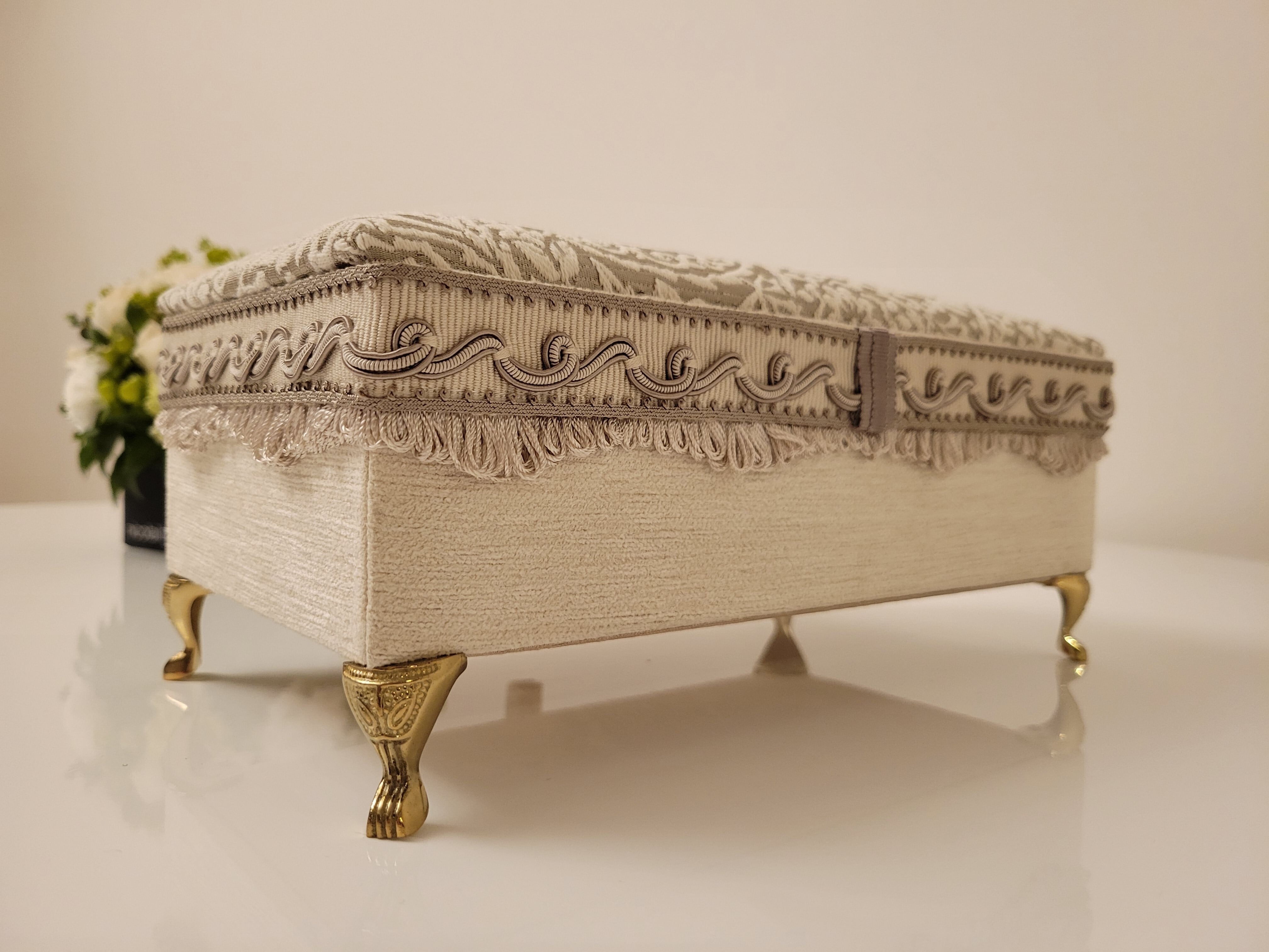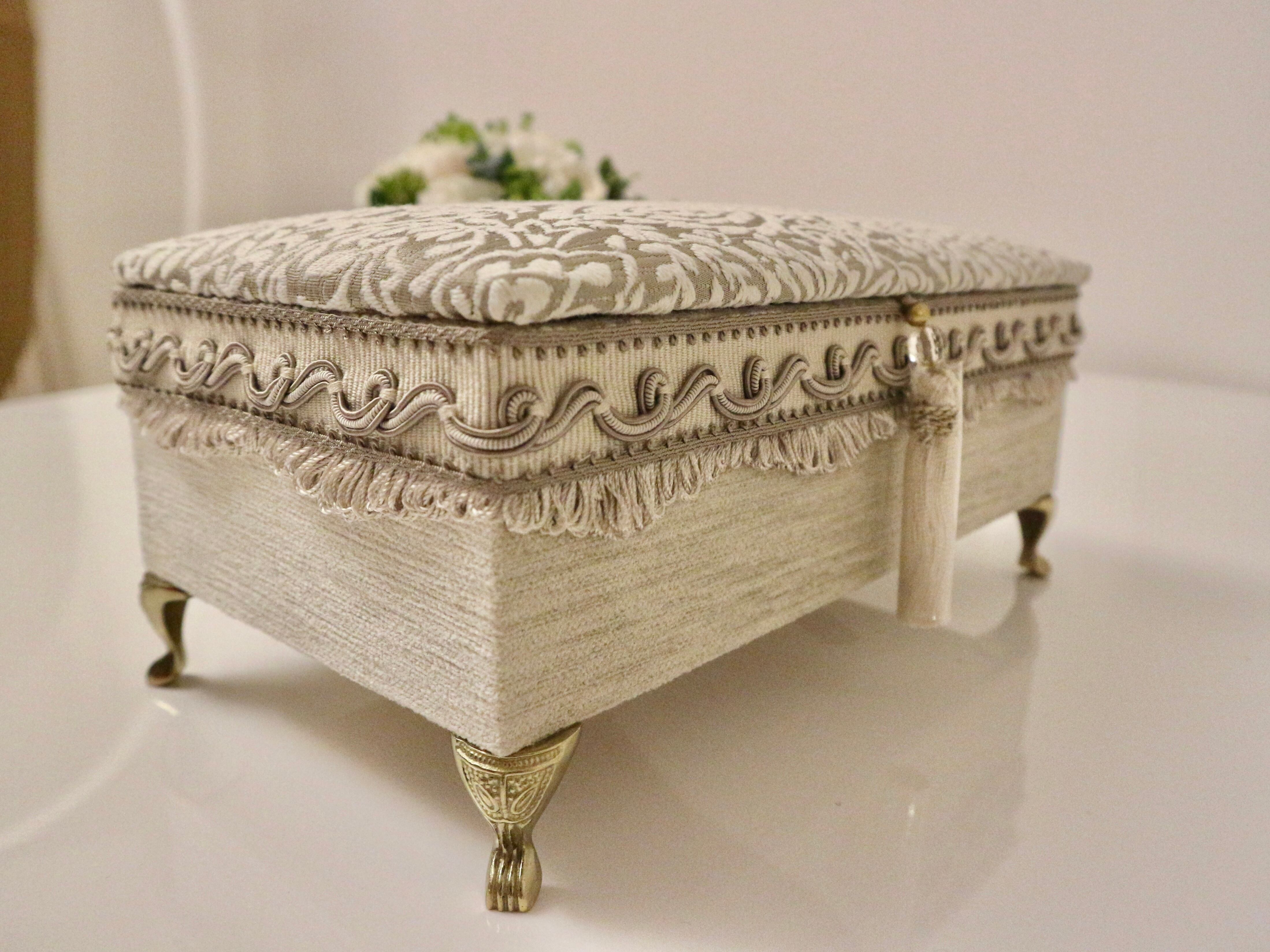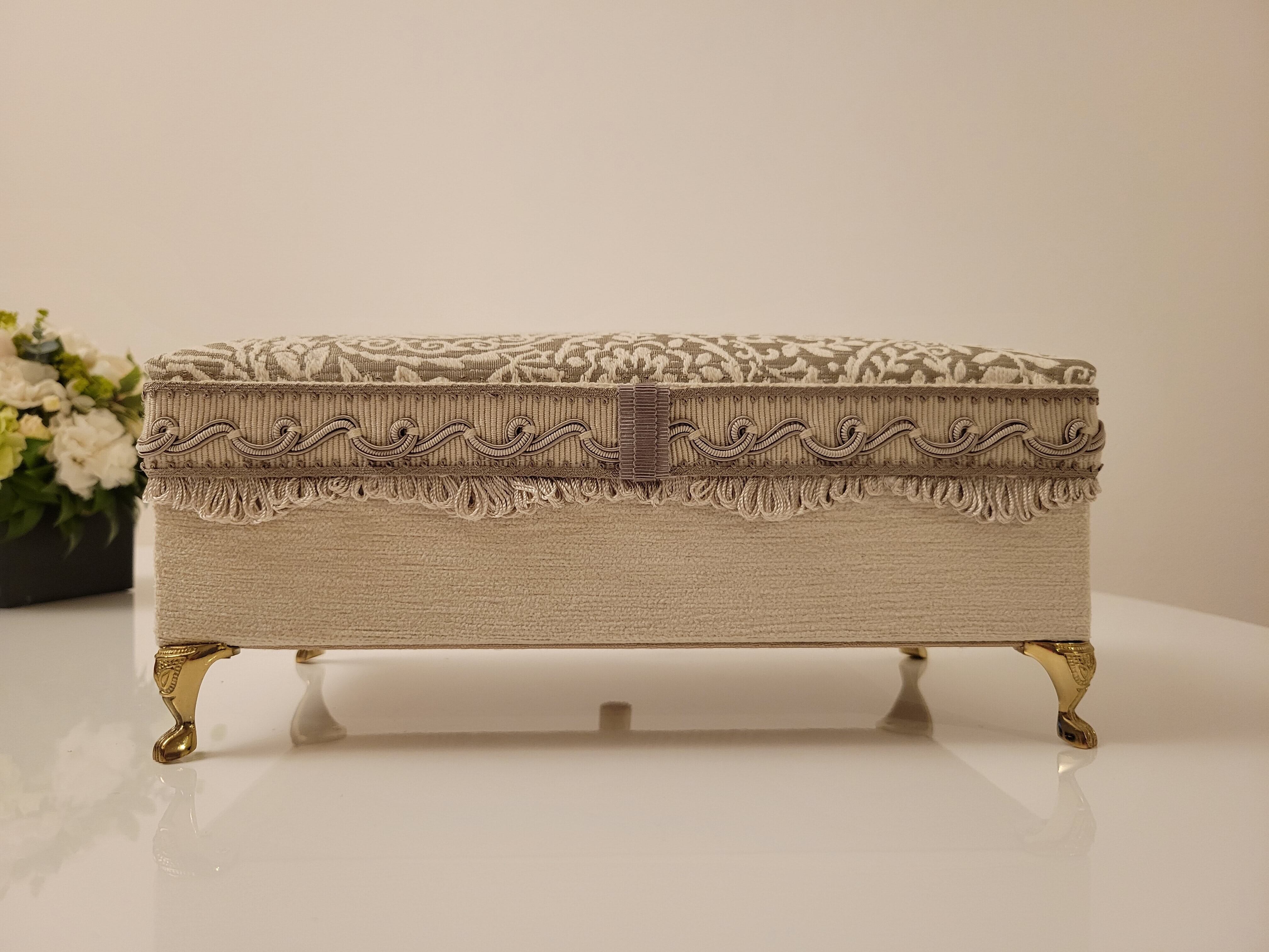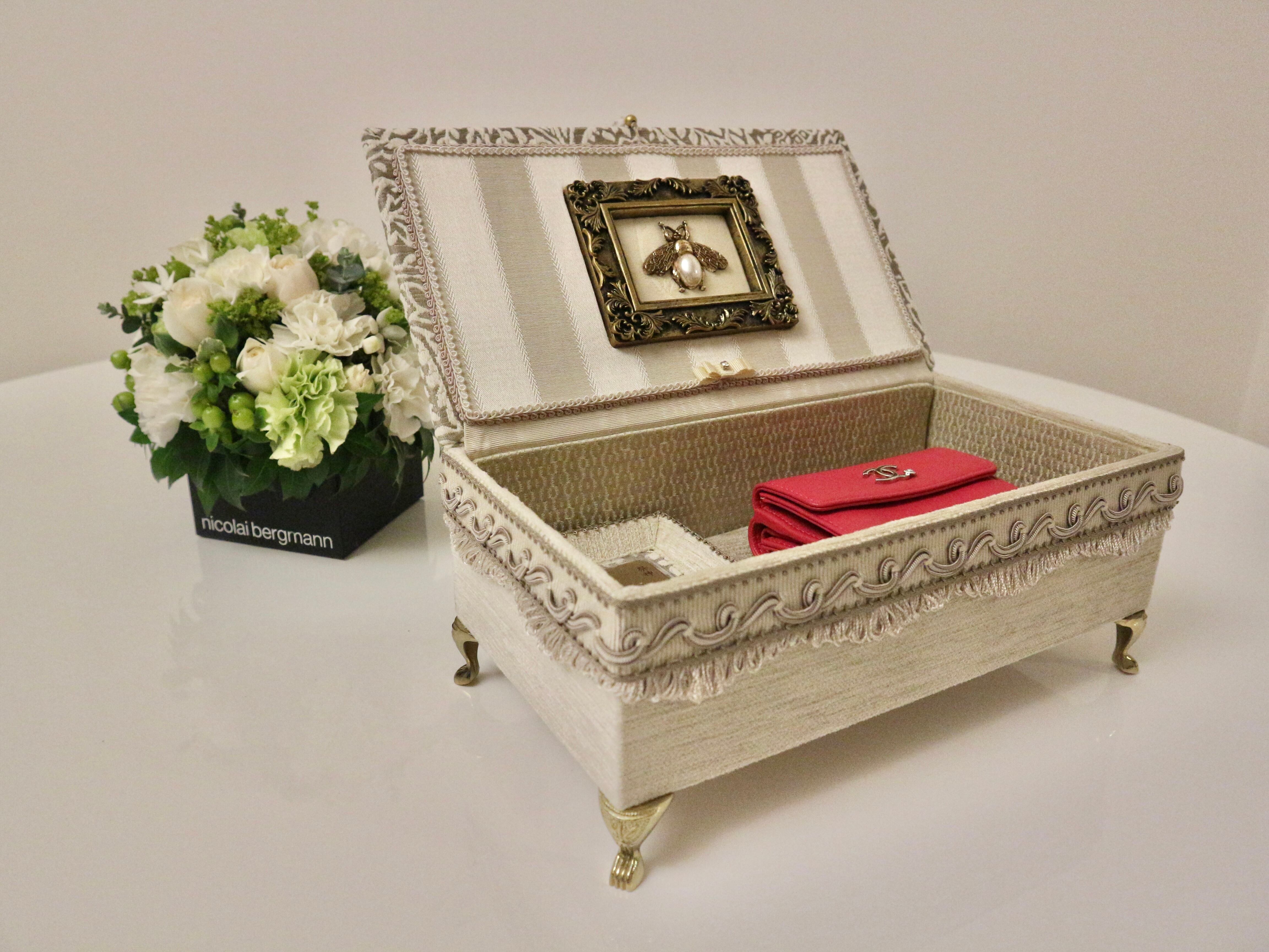 付属のミニトレイは、ベロアとトップに使用したジャガード生地を合わせ統一感のあるデザインなので、お財布ベッドと並べてアクセサリーや小物入れとしてお使いいただいても素敵です。