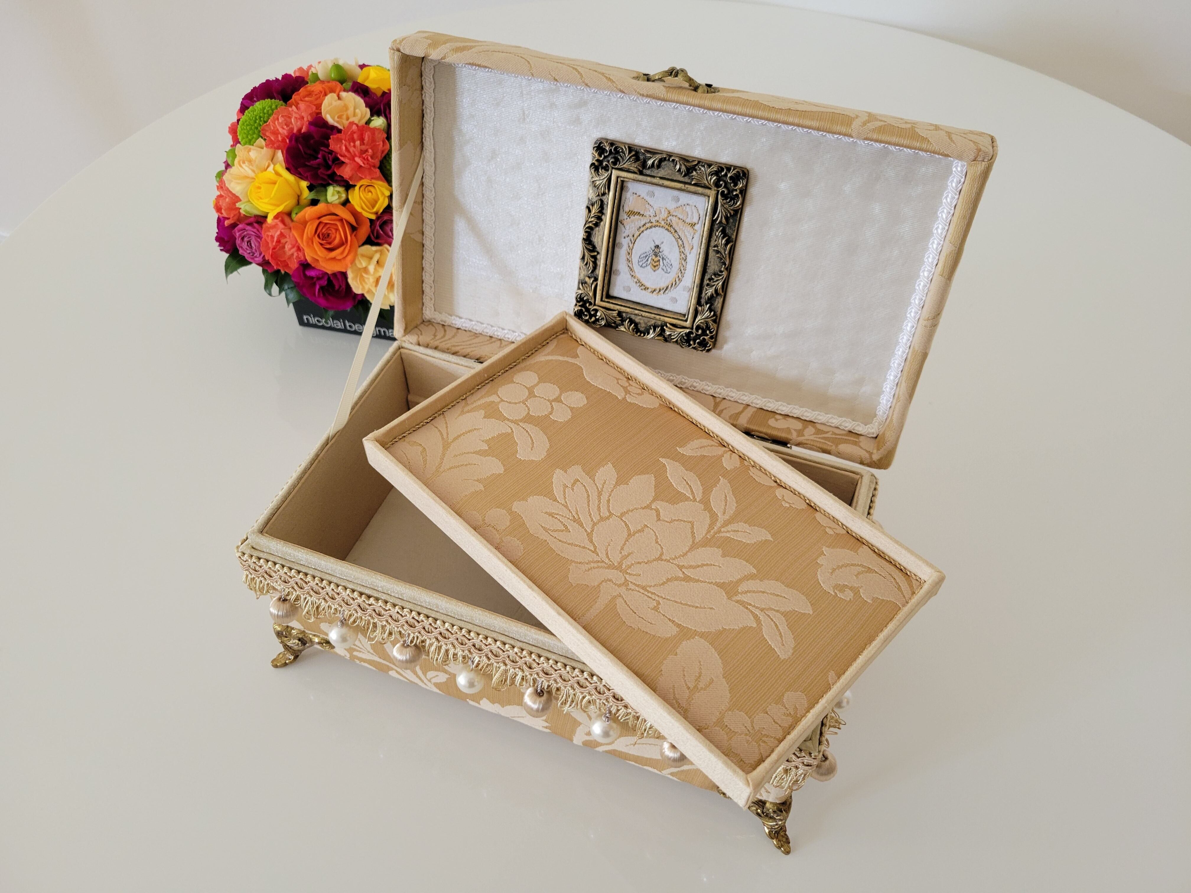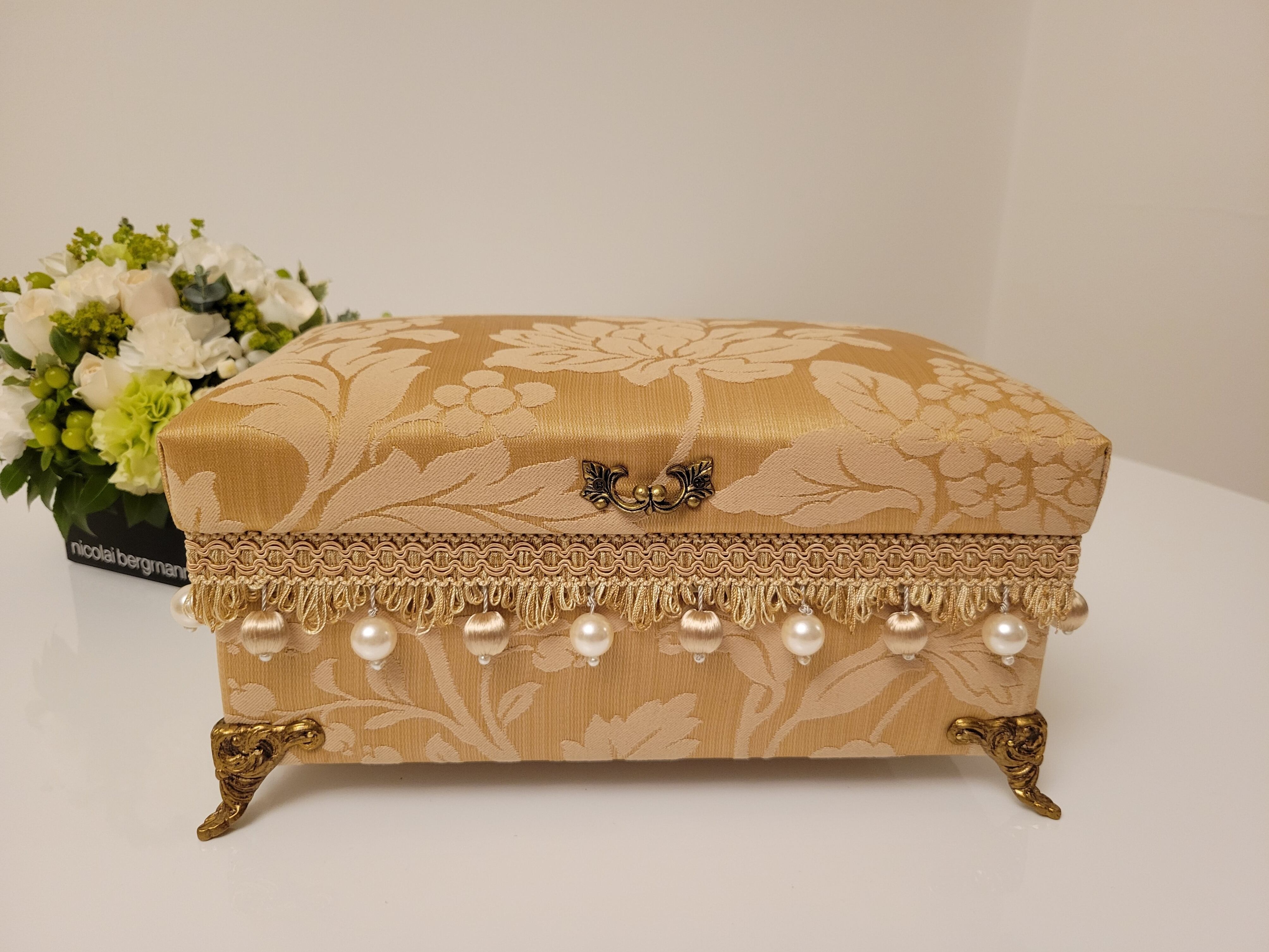 外側の上品な雰囲気と、開けたときのリッチなゴージャス感やゴールドの輝きなど、特別仕様と呼ぶにふさわしいお財布ベッドが完成しました。